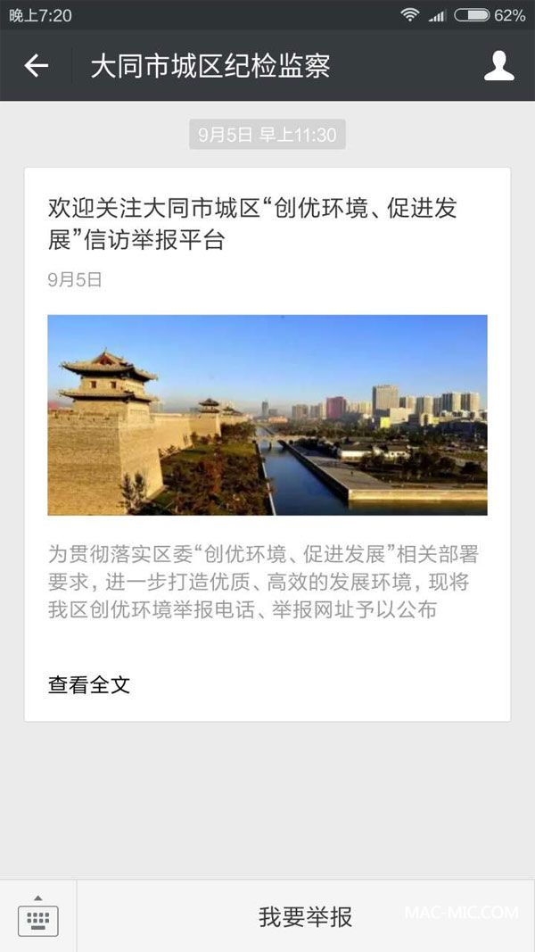 大同城區(qū)“創(chuàng)優(yōu)環(huán)境、促進(jìn)發(fā)展” 信訪舉報(bào)微信服務(wù)平臺(tái)開(kāi)通