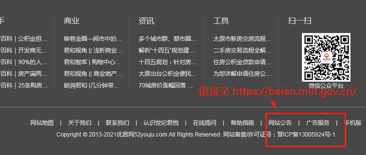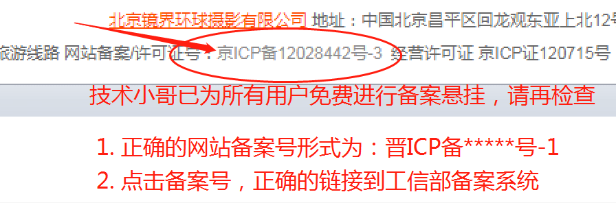截至目前,宏微技術(shù)小哥已經(jīng)加班加點(diǎn),為所有用戶(hù)免費(fèi)進(jìn)行了網(wǎng)站備案號(hào)懸掛和鏈接指向修改。因修改涉及客戶(hù)數(shù)量多,修改范圍廣(此前只要求懸掛主體單位備案號(hào)如晉ICP備****號(hào)),各家客戶(hù)采用的網(wǎng)站系統(tǒng)和數(shù)據(jù)形式不同,雖反復(fù)檢查,仍唯恐遺漏,所以請(qǐng)廣大網(wǎng)站備案用戶(hù)務(wù)必在電腦端打開(kāi)網(wǎng)站,查看首頁(yè)底部的網(wǎng)站備案號(hào)是否為“晉ICP備****號(hào)-1”形式,并測(cè)試點(diǎn)擊備案號(hào)可以打開(kāi)工信部備案系統(tǒng)https://beian.miit.gov.cn,如出現(xiàn)遺漏或鏈接無(wú)法打開(kāi),請(qǐng)速速與我們聯(lián)系,避免被處罰或取消接入等風(fēng)險(xiǎn)。