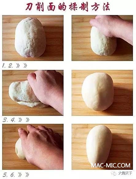 刀削面對和面的技術(shù)要求較嚴,水、面的比例,要求準確,一般是一斤面三兩水,打成面穗,再揉成面團,然后用濕布蒙住,餳半小時后再揉,直到揉勻、揉軟、揉光。如果揉面功夫不到,削時容易粘刀、斷條。