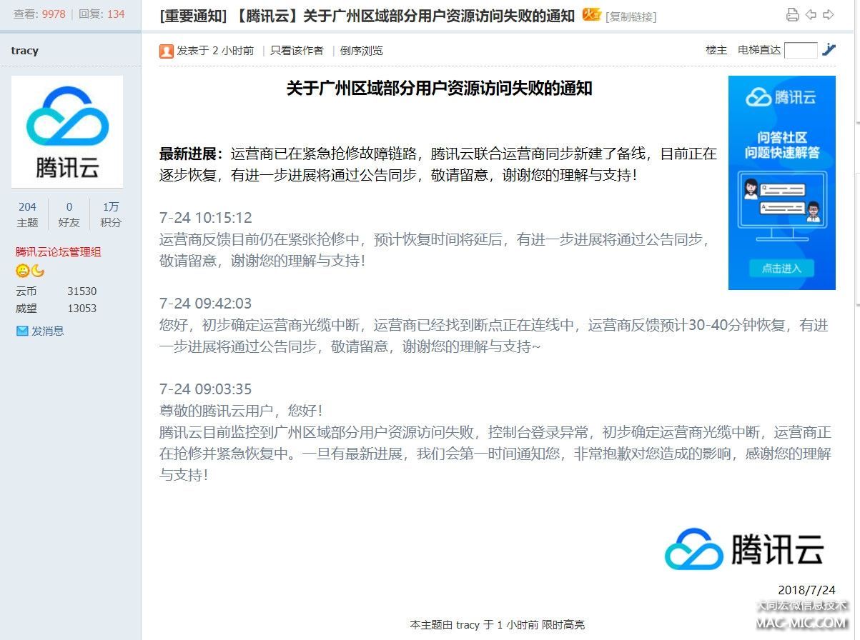 前沿數(shù)控技術在微博中表示,在業(yè)務量的需求下,公司使用了騰訊云,可“災難”發(fā)生在2018年7月20日。接下來的兩天,騰訊云組織了技術專家來對此次故障進行補救,但前沿數(shù)控技術公司數(shù)據(jù)還是丟失了。